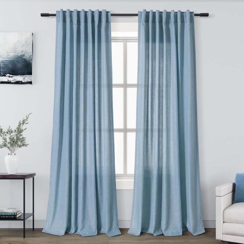 LINEN BLEND FABRIC: Crafted from rich flax linen fabric blended with polyester featuring a neutral linen shade, those blue curtain panels are more textured than normal sheers and showcase an casual and natural look. Soft touch feeling on these elegant linen blend draperies add an rustic classic and refreshing charm to your window