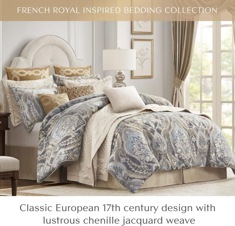 Chenille Jacquard Damask Comforter Set, California King, Blue/Grey 4 Piece