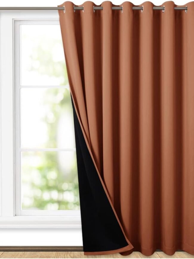 Burnt Orange 100% Blackout Patio Door Curtain, Super Heavy-Duty Thermal Backing Room Divider Drape Space Dividing, Privacy Assured Window Treatment(1 Panel, 100 inches W x 84 inches L)