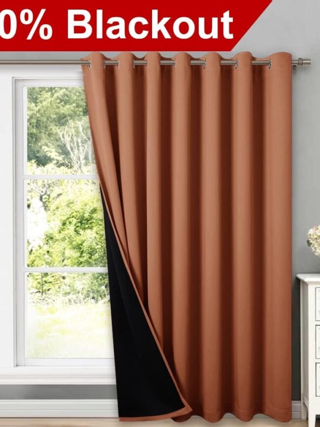 - UNIQUE DESIGN: Draperies constructed with 2 layers are all triple weave blackout fabric, balancing room temperature meanwhile protect PRIVACY. These extra wide curtains are wide enough to cover the sliding door perfectly. Suitable perfectly for sliding door, patio door, and any large window.