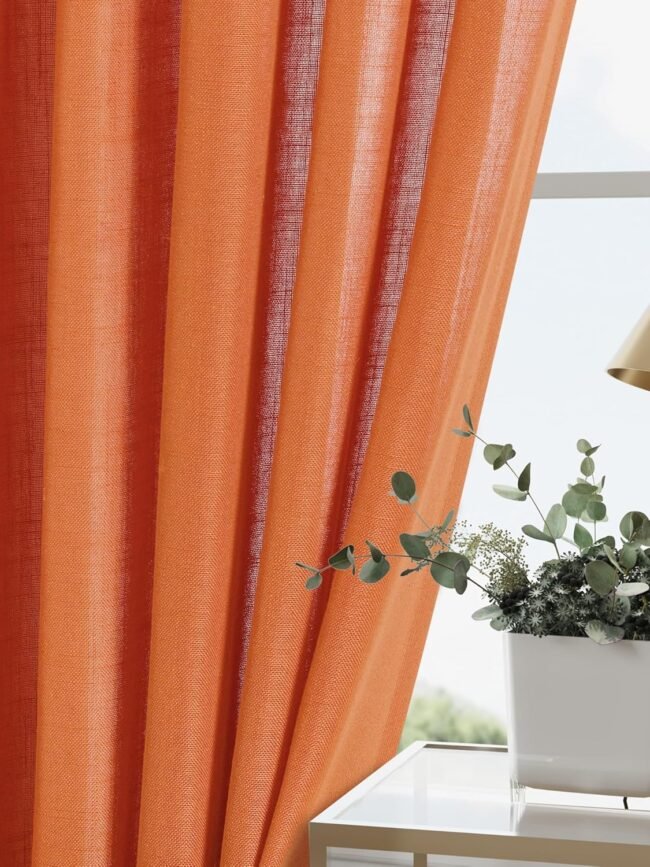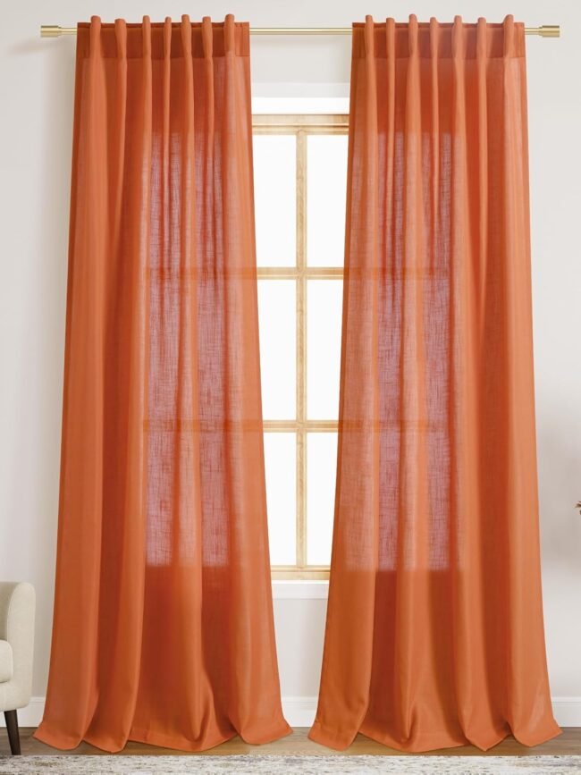Burnt Orange Curtains 84 inches Long for Living Room Back Tab Linen Textured Semi Sheer Orange Bohemian Farmhouse Window Curtain 2 Panels for Bedroom Halloween Decor Autumn Fall Color Curtains